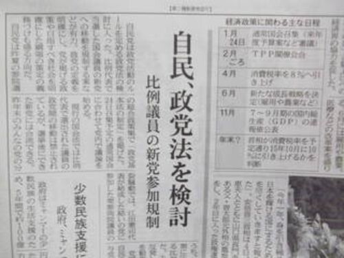 2014年1月5日の日経新聞は「自民党が政党法の検討を通常国会にあわせて始める」と報じました。 この政党法とは、政党助成法、政党法人格付与法のほか、おのおの国会法、公職選挙法、政治資金規正法に定められた規定を包括化するものです。 包括的な政…