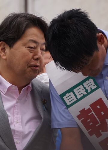 [写真]スタッフの段取り通りに駅頭活動する岡田克也さん(右)と阿久津幸彦さんら、東京・大山駅前で、おととし2023年6月、宮崎信行撮影。 岡田克也さんは衆議院経済産業委員2年目に入ることが党国対で内定しました。正式には、15日以降とみられる…
