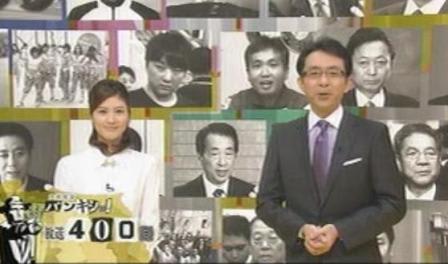この日の「バンキシャ」は放送回数400回記念とのこと。生き馬の目を抜く放送業界で、日曜夜という競争の激しい時間帯で、8年間続いていると言うことで、おめでとうございます。
