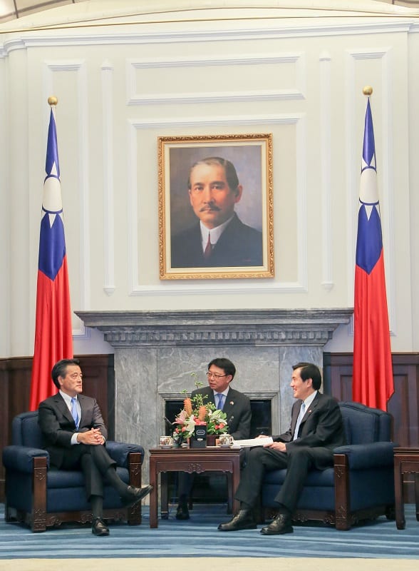 岡田克也さんと会談する馬英九・台湾総統(国民党主席)=「中央社」配信写真