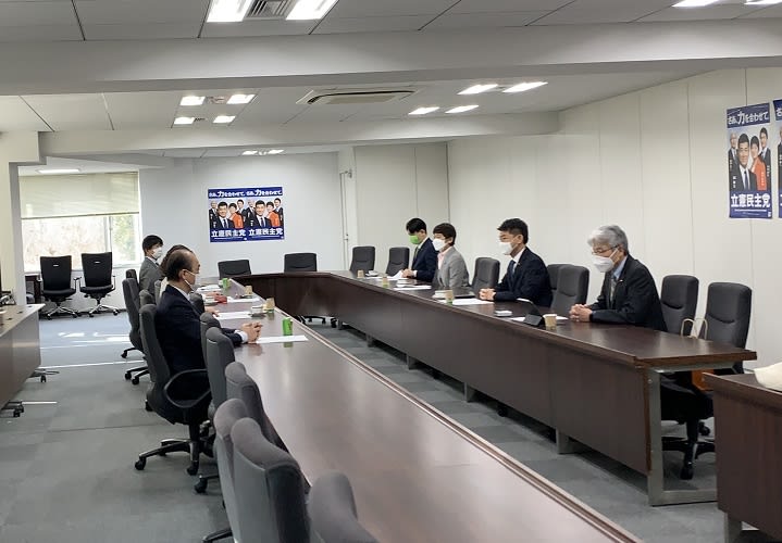連合4役(会長、事務局長、代表代行)と立憲民主党の役員との「第2回定例懇談会」が、きょう令和4年2022年3月25日(金)、立憲民主党本部別館の会議室で開かれました。