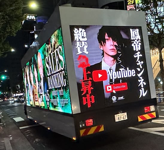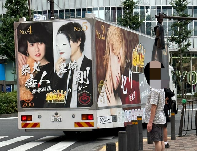 [写真]誰が誰に向けた宣伝かは不明だが、ホストの売上ランキングを宣伝する「横浜」ナンバーのデコトラック、宮崎信行撮影。